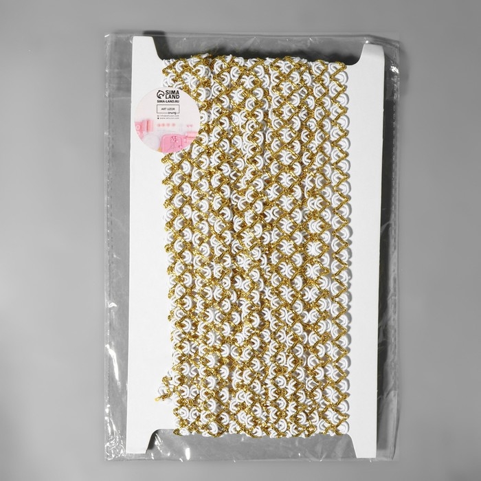 Тесьма декоративная, 10 мм, 10 ± 1 м, цвет белый/золотой