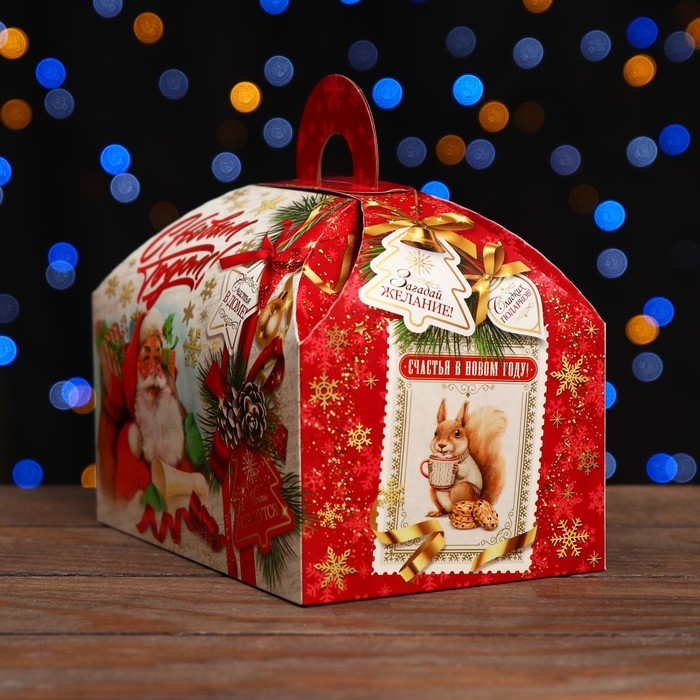 Праздничный дизайн: На коробке изображены яркие и праздничные новогодние мотивы. Она создает атмосферу праздника с первого взгляда.