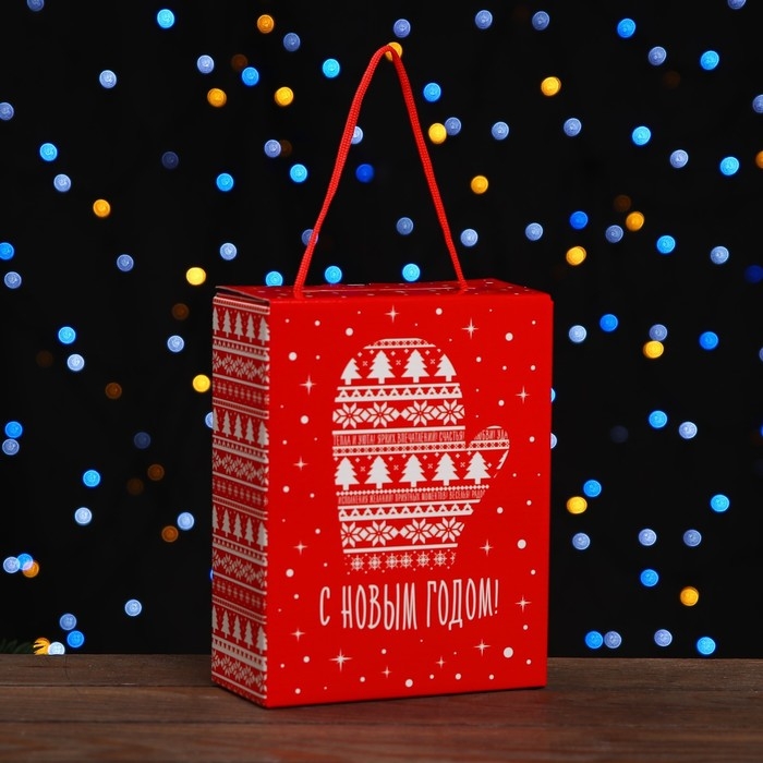 Новый год. Коробка подарочная складная "Рукавичка" 16,5 х 7,5 х 21 см.