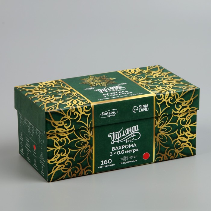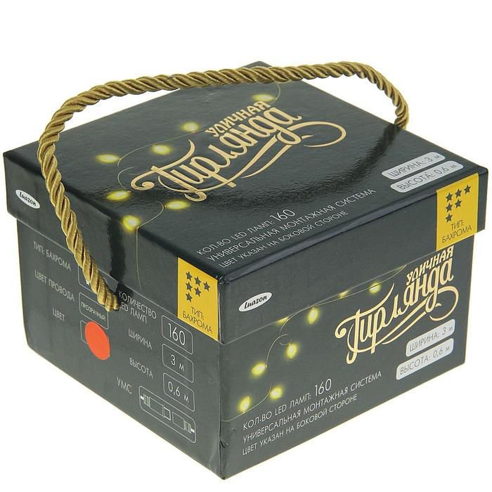 Гирлянда «Бахрома» 3 × 0.6 м, IP44, УМС, прозрачная нить, 160 LED, свечение красное, 220 В