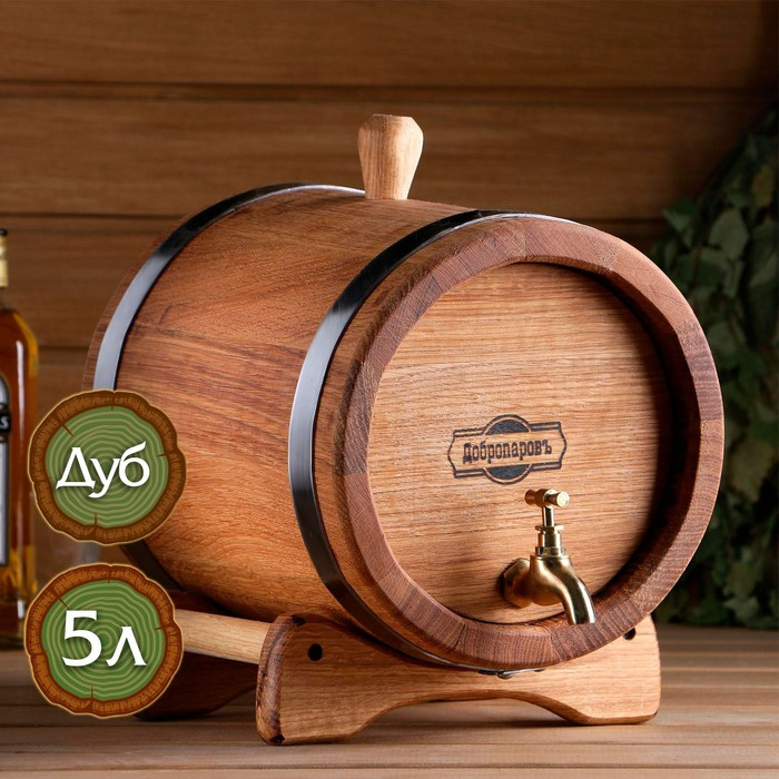 Бочка дубовая на подставке, 5л, кавказский дуб, кран из латуни, покрыта льняным маслом