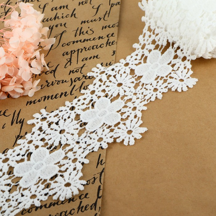 Кружево гипюровое, 45 мм × 9 ± 0,5 м, цвет белый