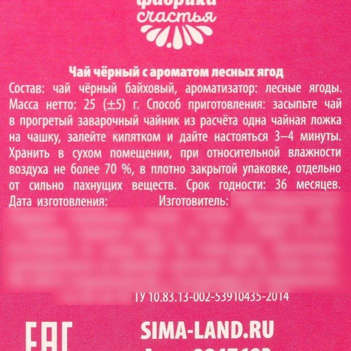 Состав: чай чёрный байховый, ароматизатор: лесные ягоды.
