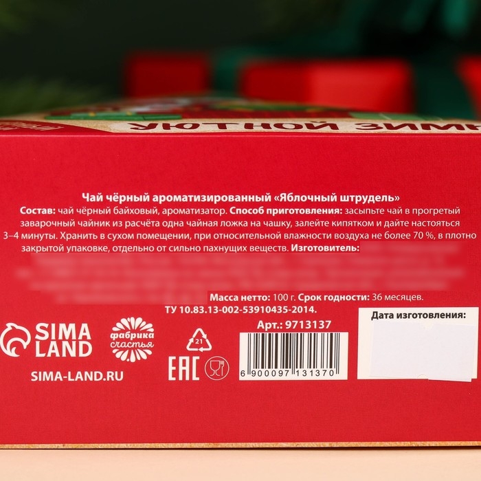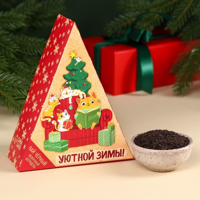Новый год! Чай чёрный «Уютной зимы» вкус: яблочный штрудель, в коробке-ёлке, 100 г.