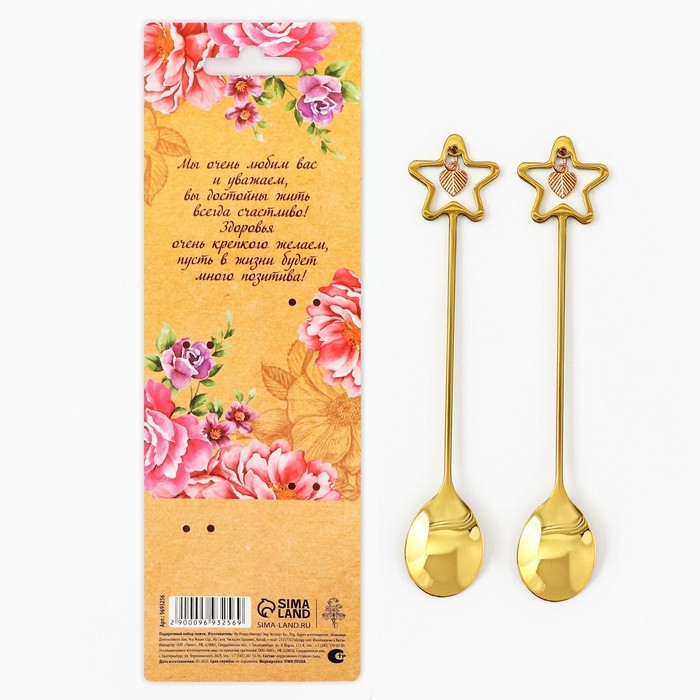 Ложки с подвесами «Любимым бабушке и дедушке», 2 шт., 3 х 15 см.
