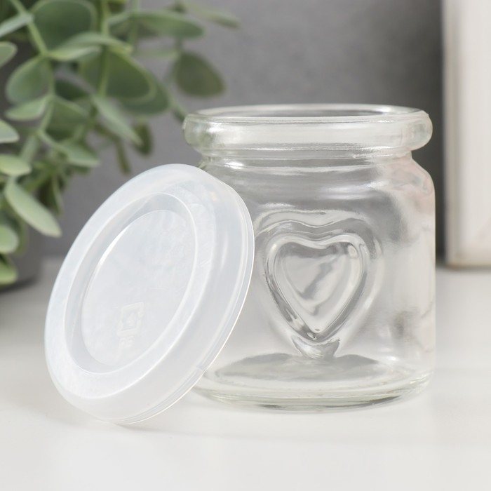 Банка для свечей стекло с крышкой "Сердечко" прозрачная 100 мл 6х6х6,8 см