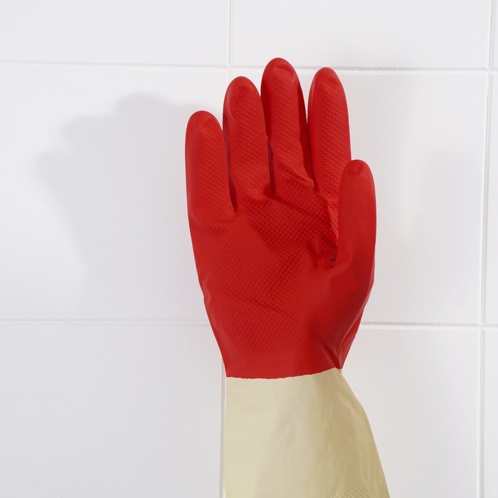 Перчатки хозяйственные плотные Доляна, размер M, размер L, латексные, цвет красный
