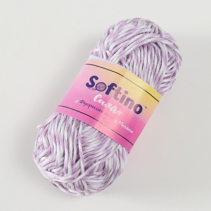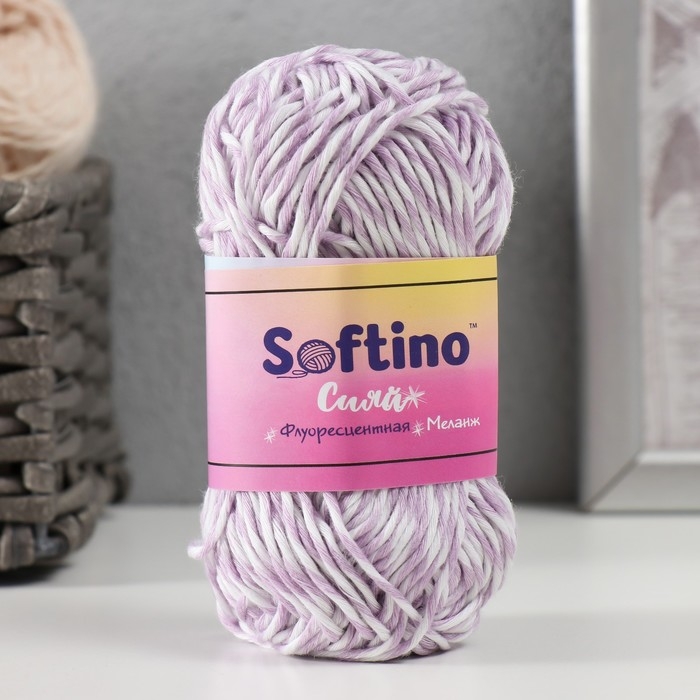 Пряжа светящаяся 100% лавсан "Сияй" меланж 50 гр 50 м бело-сиреневая