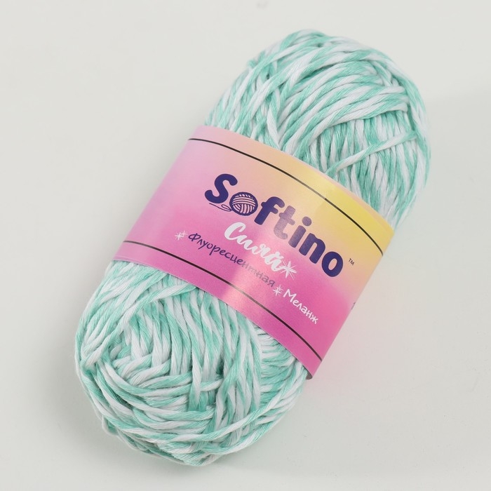 Пряжа светящаяся 100% лавсан "Сияй" меланж 50 гр 50 м бело-бирюзовая