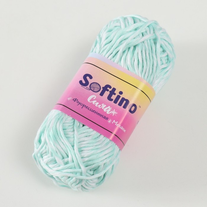 Пряжа светящаяся 100% лавсан "Сияй" меланж 50 гр 50 м бело-голубая