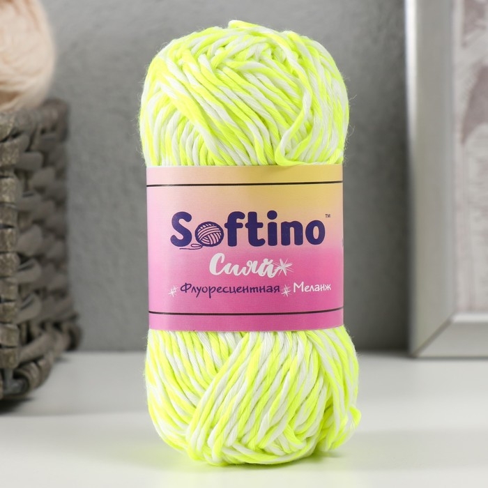 Пряжа светящаяся 100% лавсан "Сияй" меланж 50 гр 50 м бело-неоново-желтая