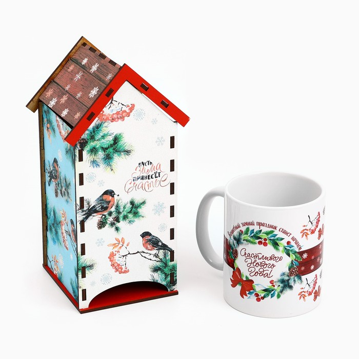 Подарочный новогодний набор: чайный домик и кружка «Новый год: С новым годом»