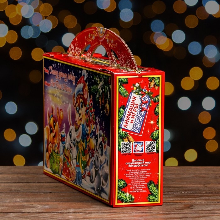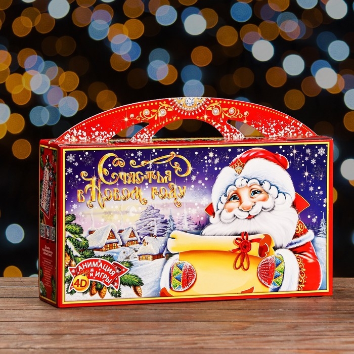 Новый год. Подарочная коробка "Волшебный свиток" , Портфель макси широкий , 37 x 8 x 20,2 см.