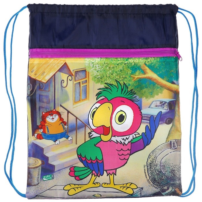Мешок для обуви с карманом 420*350 мм, Союзмультфильм Попугай Кеша (мягкий полиэстер, плотность 210D)