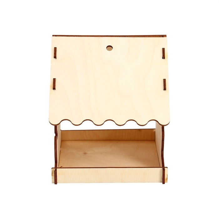 Чтобы собрать кормушку, аккуратно соедините фанерные детали, вставляя их в пазы. Используйте клей для лучшей фиксации. При желании модель можно раскрасить или задекорировать.