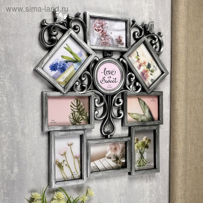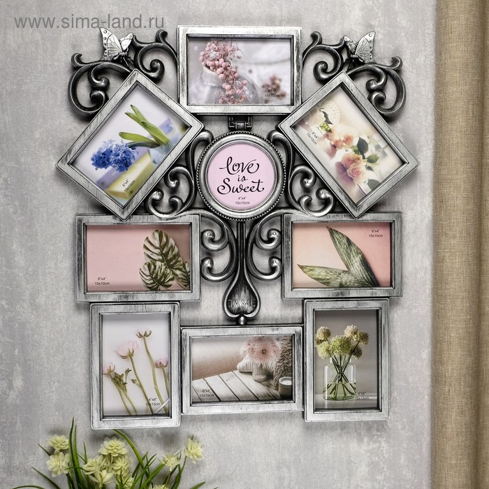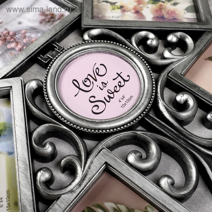 Фоторамка пластик на 9 фото 10х10, 10х15 см "Узоры" тёмное серебро 54х49 см