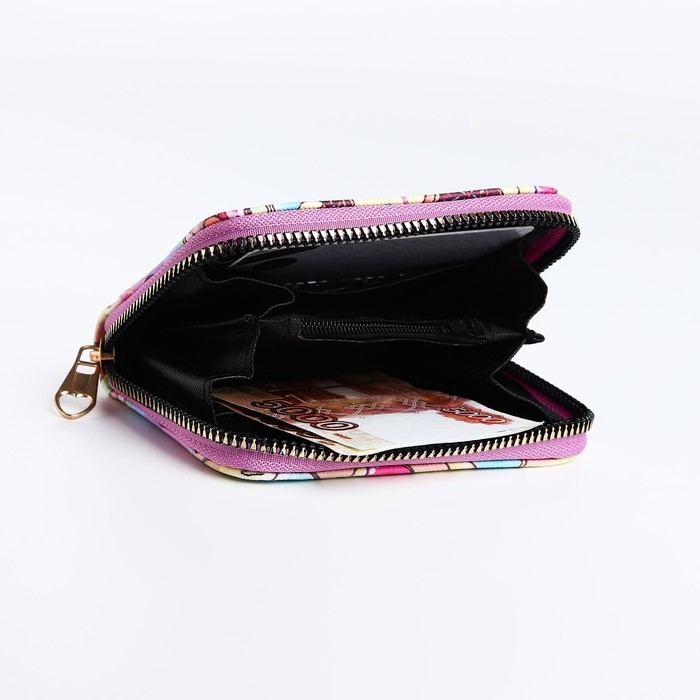 Кошелёк на молнии, цвет розовый/разноцветный