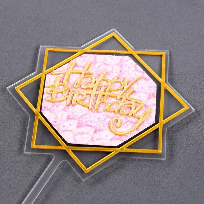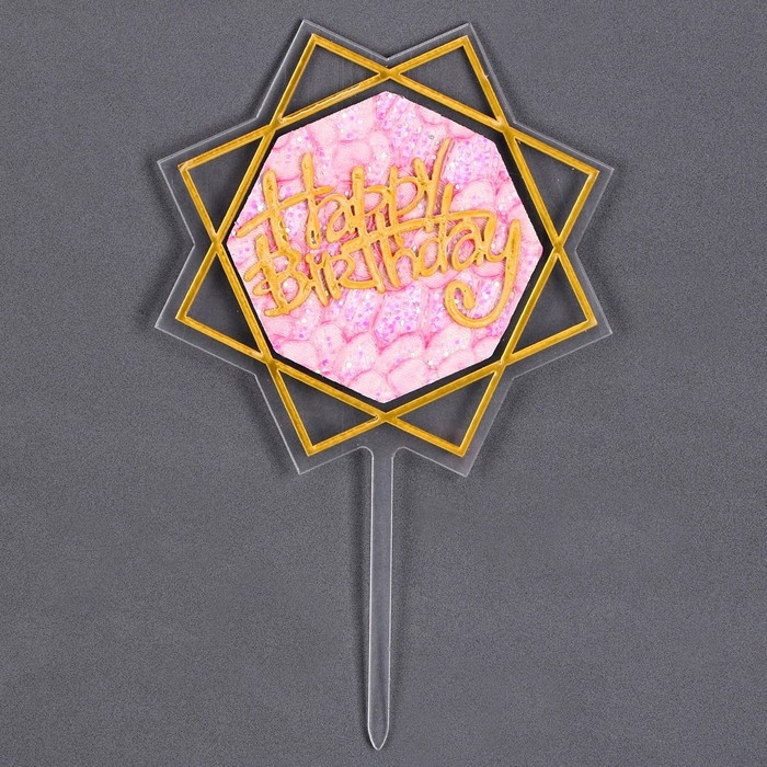Топпер для торта «С Днём Рождения», 15×13,5 см, цвет золотой