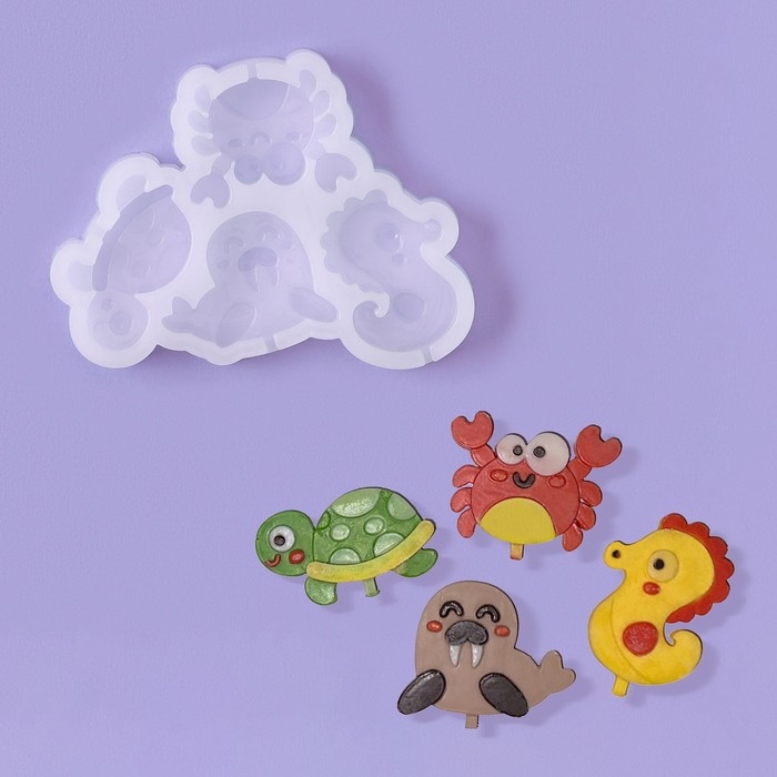 Силиконовый молд для леденцов и шоколада «Морской мир», 9,8×7,5×1 см, цвет прозрачный
