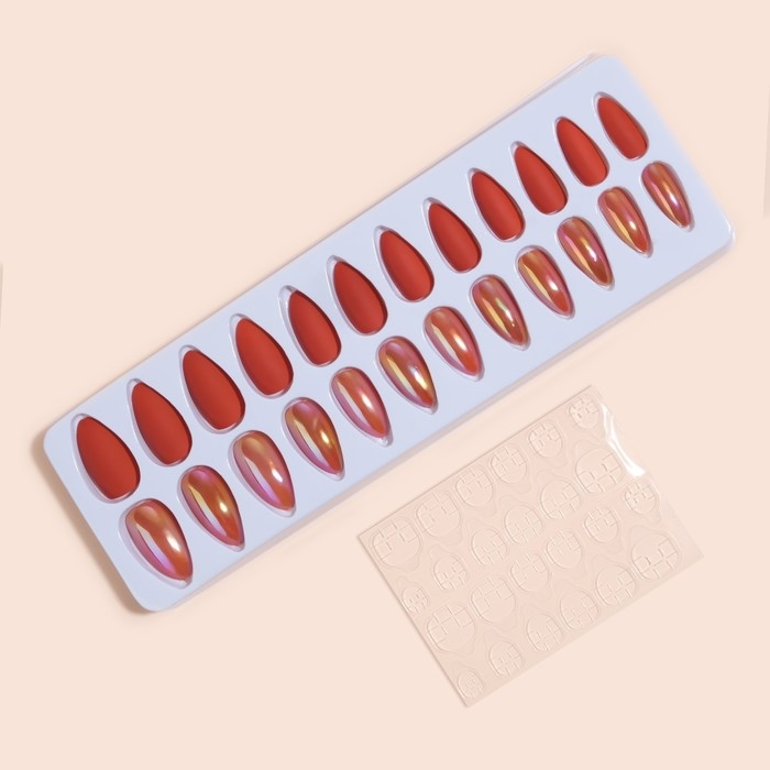 Накладные ногти, 24 шт, с клеевыми пластинами, форма миндаль, матовый/голография, цвет коралловый