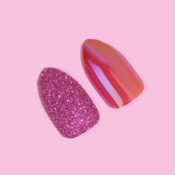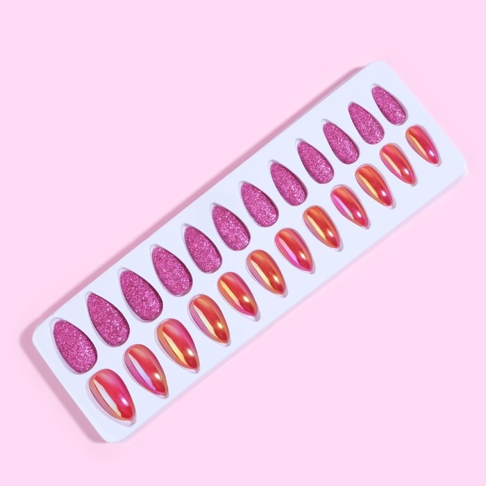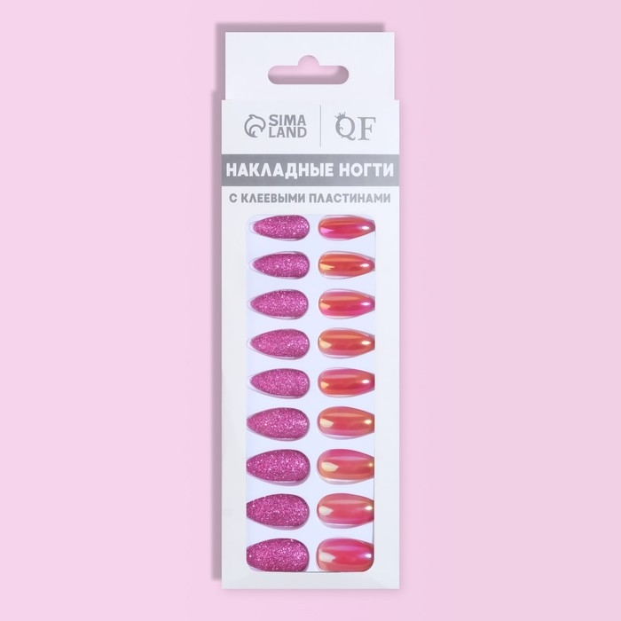 Накладные ногти, 24 шт, с клеевыми пластинами, форма миндаль, блёстки/голография, цвет малиновый