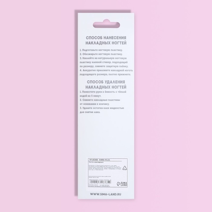 Максимальный срок носки накладных ногтей – 14 дней. Не рекомендуем перенашивать. При бережном ношении могут использоваться несколько раз.