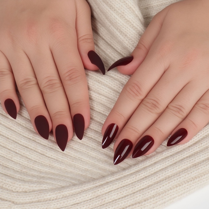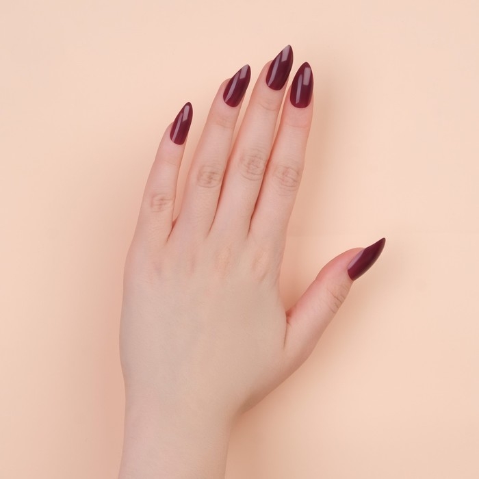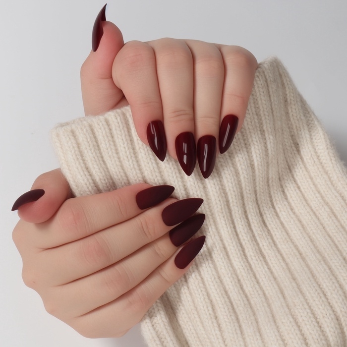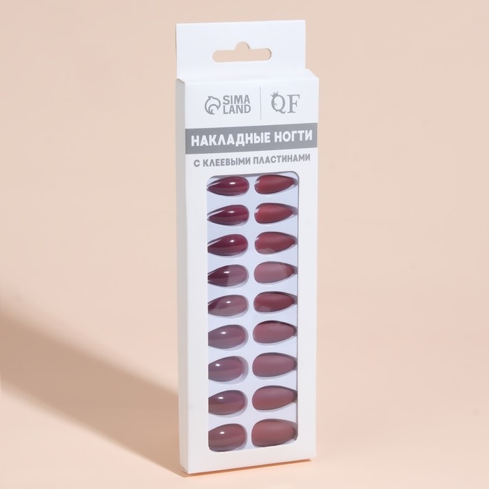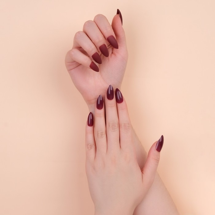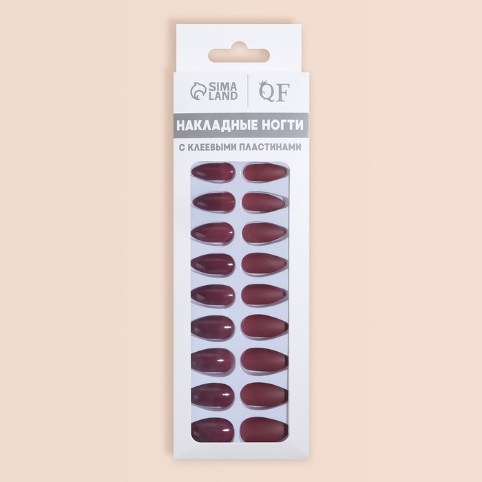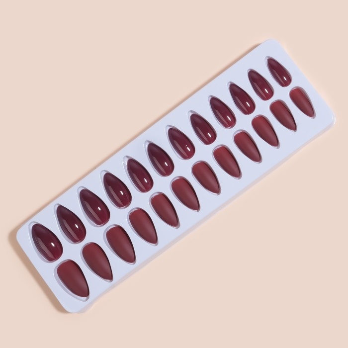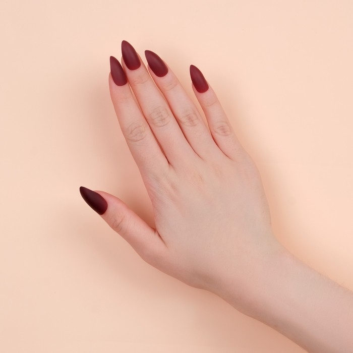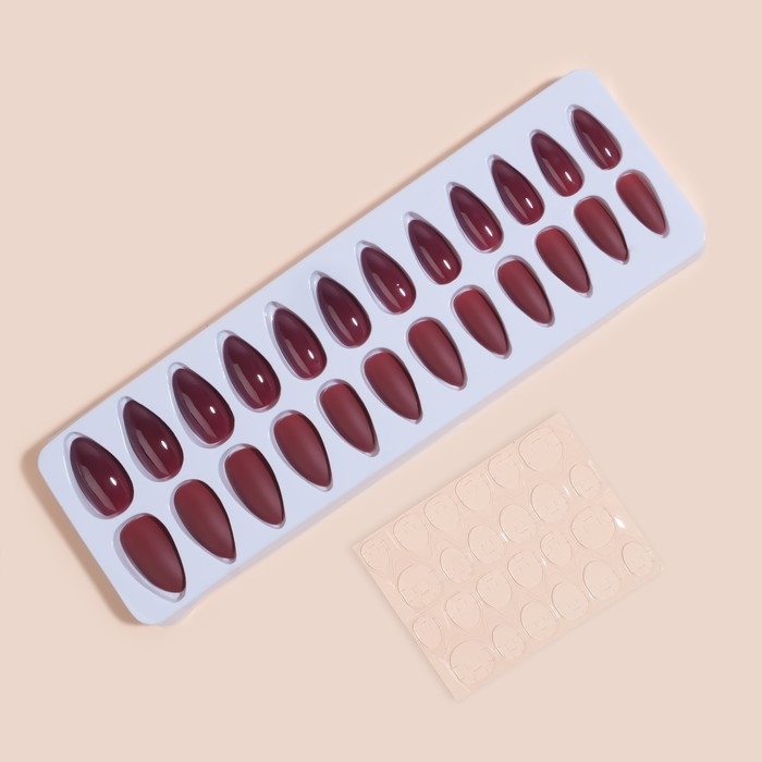 Накладные ногти, 24 шт, с клеевыми пластинами, форма миндаль, матовый/глянцевый, цвет вишнёвый