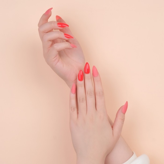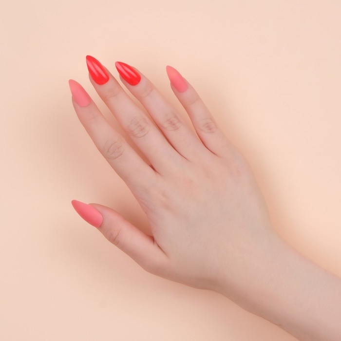 Накладные ногти, 24 шт, с клеевыми пластинами, форма миндаль, цвет неоновый/матовый розовый