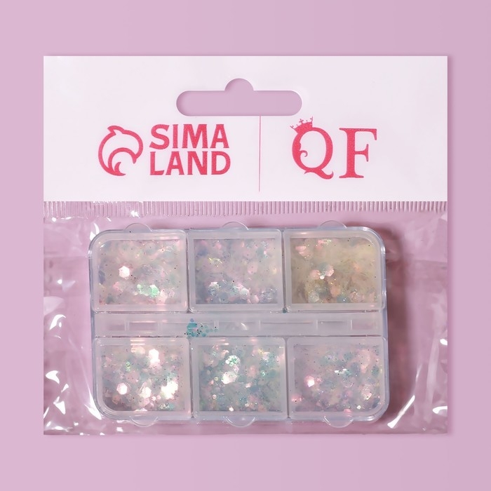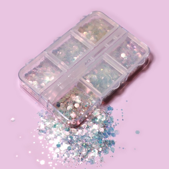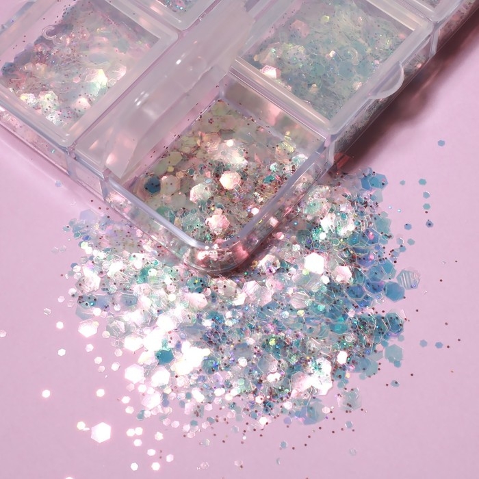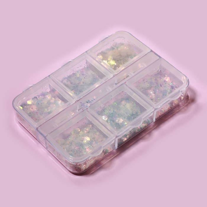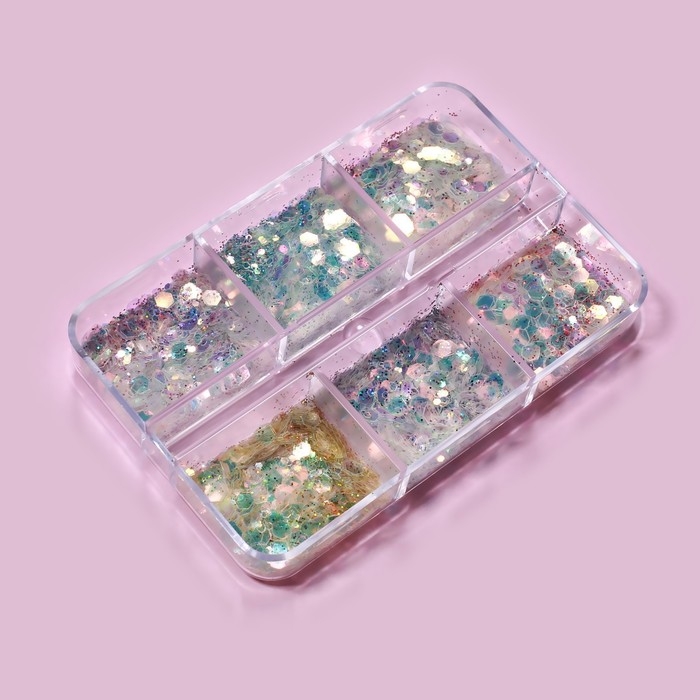 Пайетки для декора ногтей, 6 ячеек, разноразмерные, разноцветные