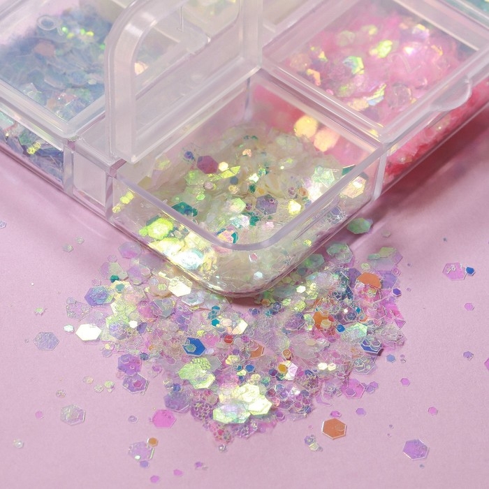Блёстки для декора ногтей «Небесное мерцание», набор 12 бутылочек, крупные/мелкие, разноцветные