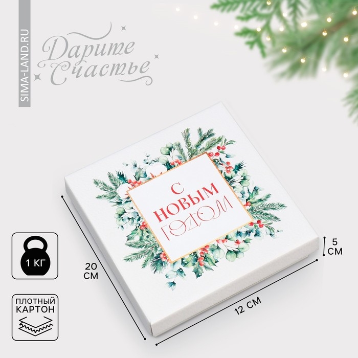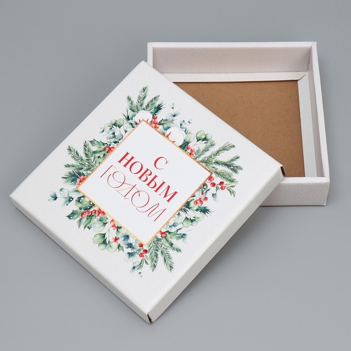 Коробка подарочная новогодняя складная «Новогодняя акварель», 20 х 20 х 5 см, Новый год