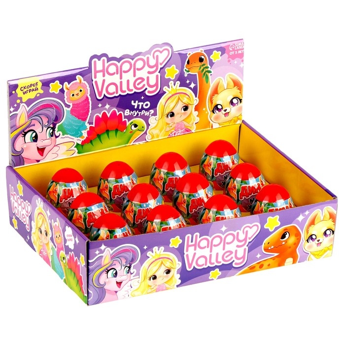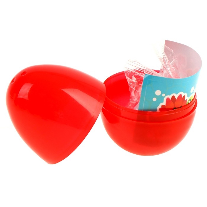 Внутри упаковки находится игрушка-мялка. Какая именно окажется в коробочке — сюрприз. Ребёнок узнает это, когда откроет яйцо.