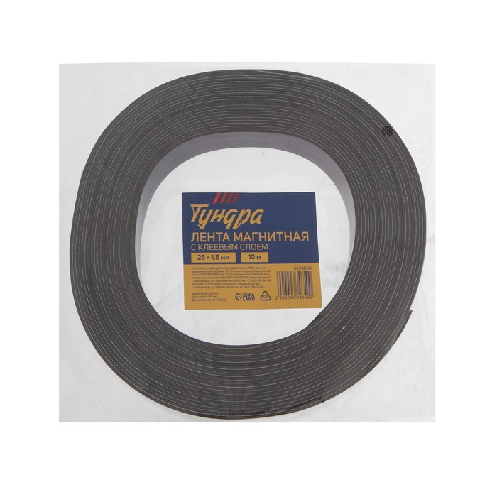 Магнитная лента ТУНДРА, с клеевым слоем, 25 х 1.5 мм, длина 10 м