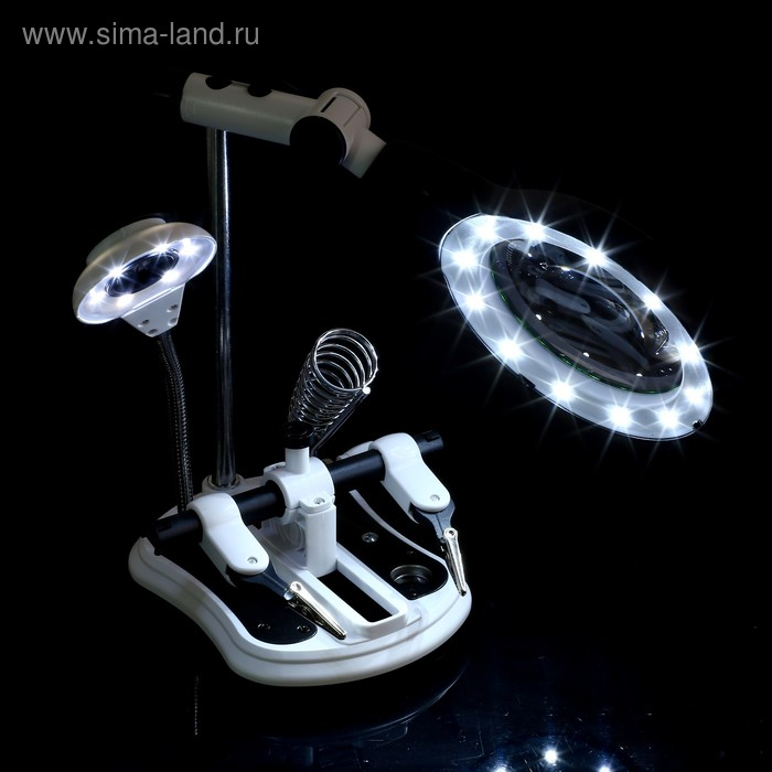 Третья рука для пайки, с зажимом, 2,5х, 5х 10х, диаметр 105мм, с подсветкой
