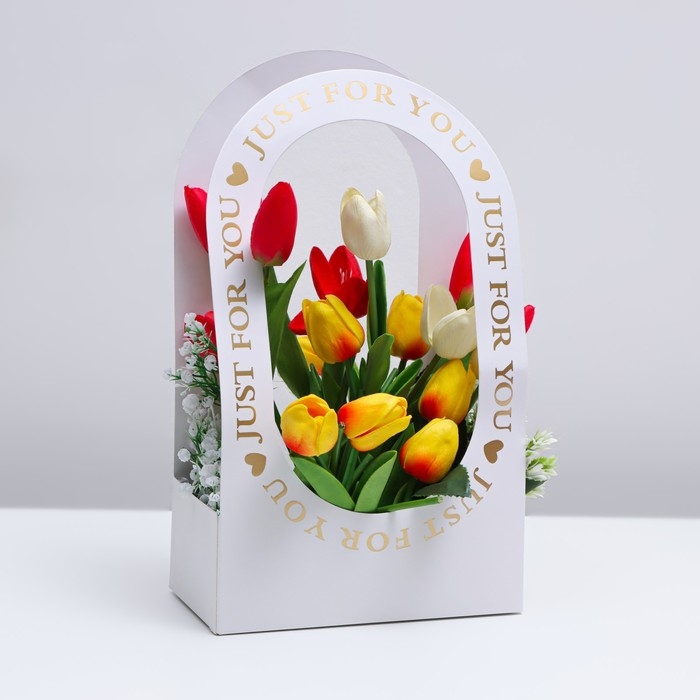 Коробка-переноска для цветов «Для тебя» 22 × 12 × 38 см, белая