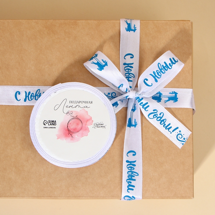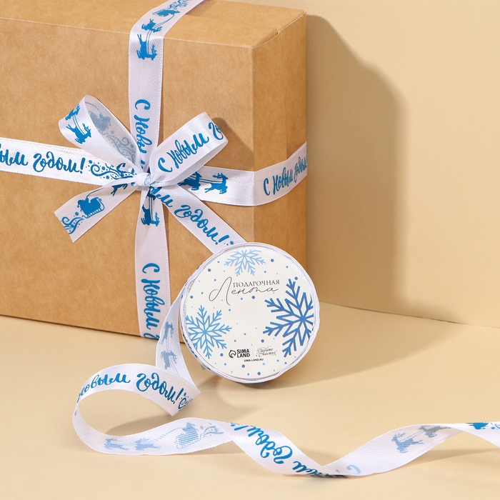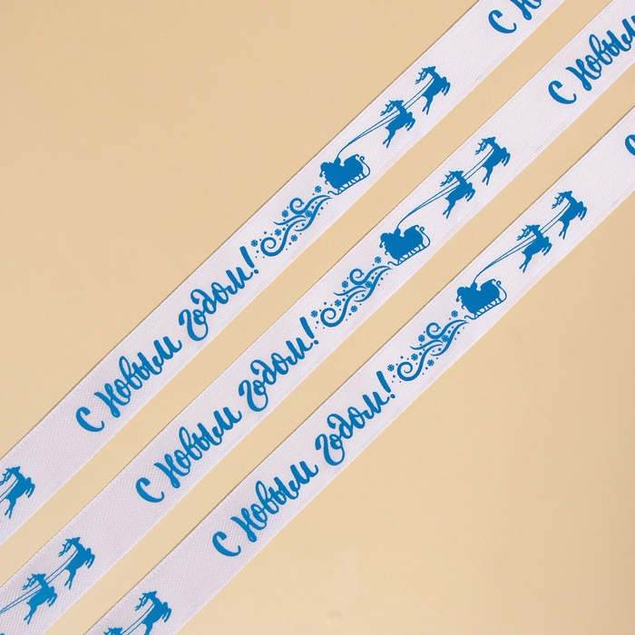Лента атласная декоративная «С Новым годом!», белая, 1.5 см × 5 м
