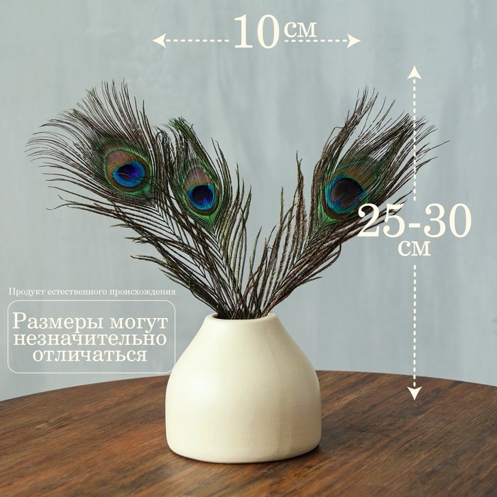 Перо павлина для декора, набор 3 шт., размер 1 шт. — от 25 до 30 см