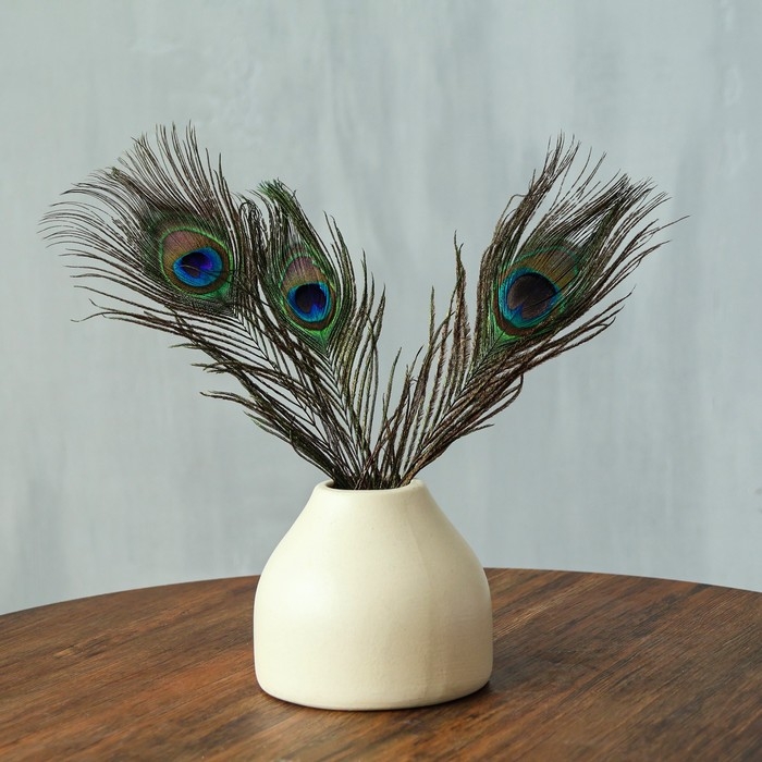 - Перья павлина натуральные и экологически чистые, ведь птицы не подвергаются жестокому обращению, поскольку их собирают в период линьки, когда птицы естественным образом сбрасывают перья.