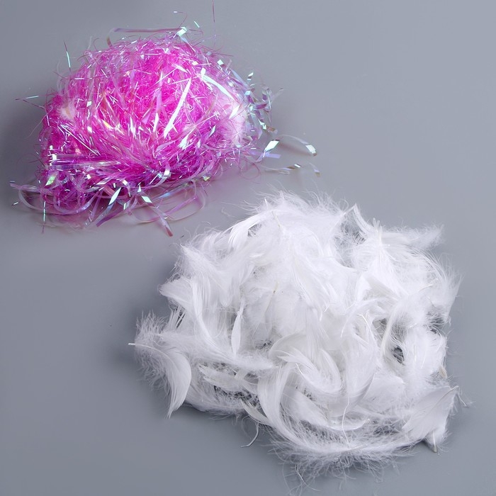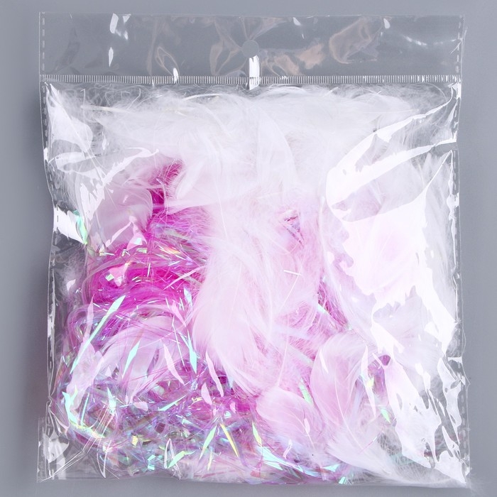 Набор для творчества и декора «Перья белые + наполнитель», цвет фуксия