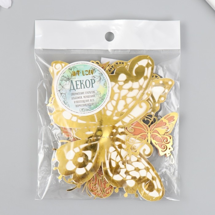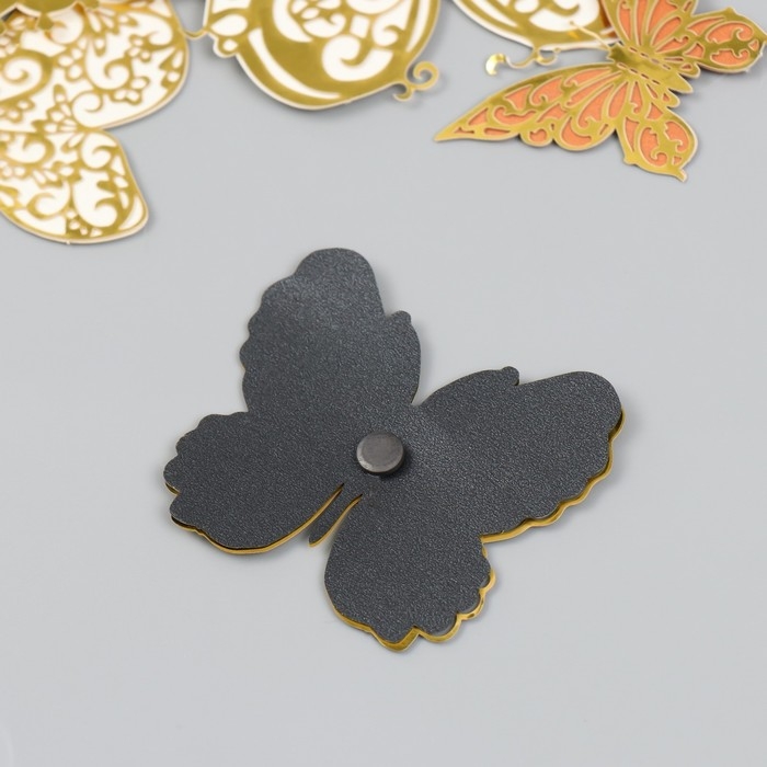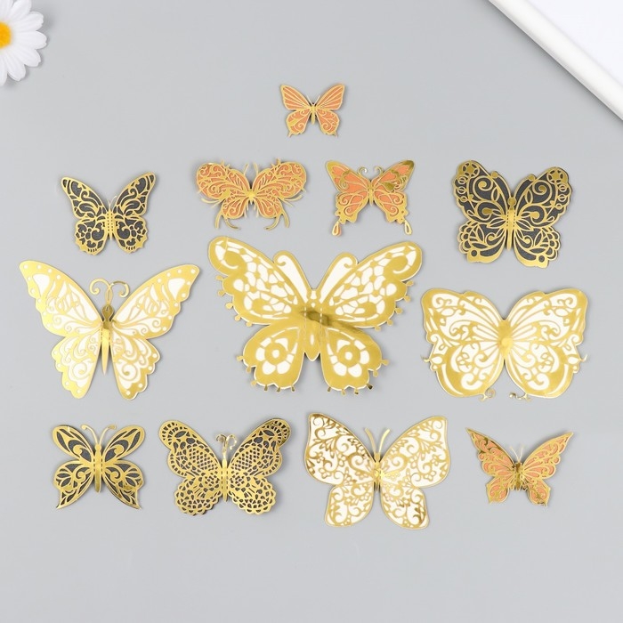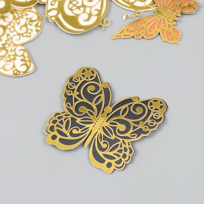 Бабочки картон двойные крылья "Ажурные с золотом" набор 12 шт h=4-10 см на магните