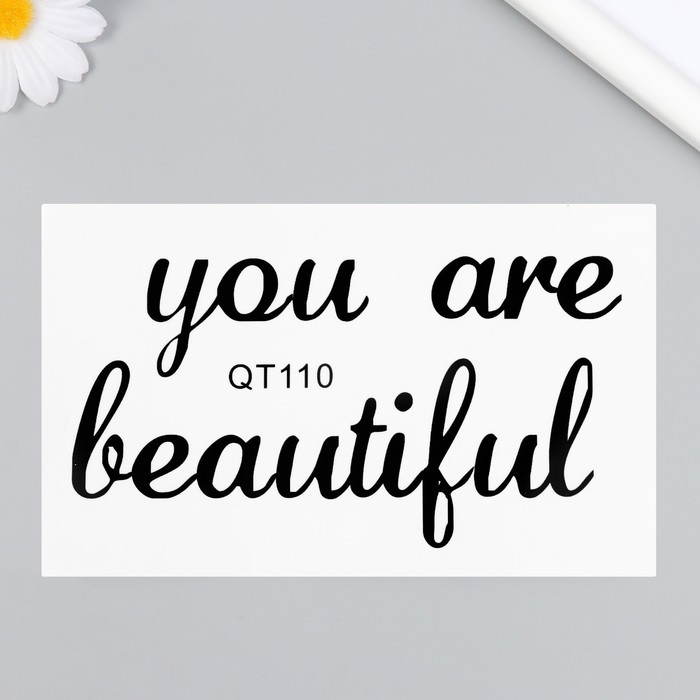 Наклейка пластик интерьерная черная "Ты красива" 10х16 см