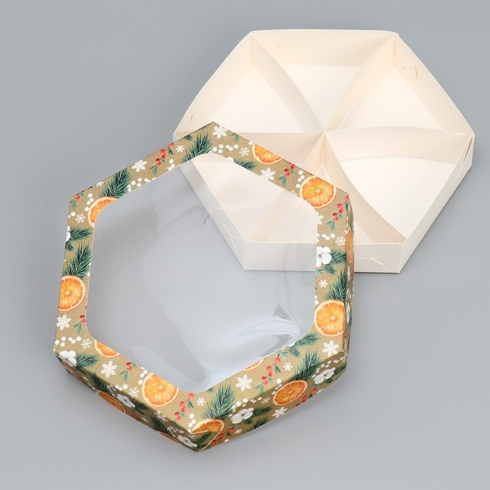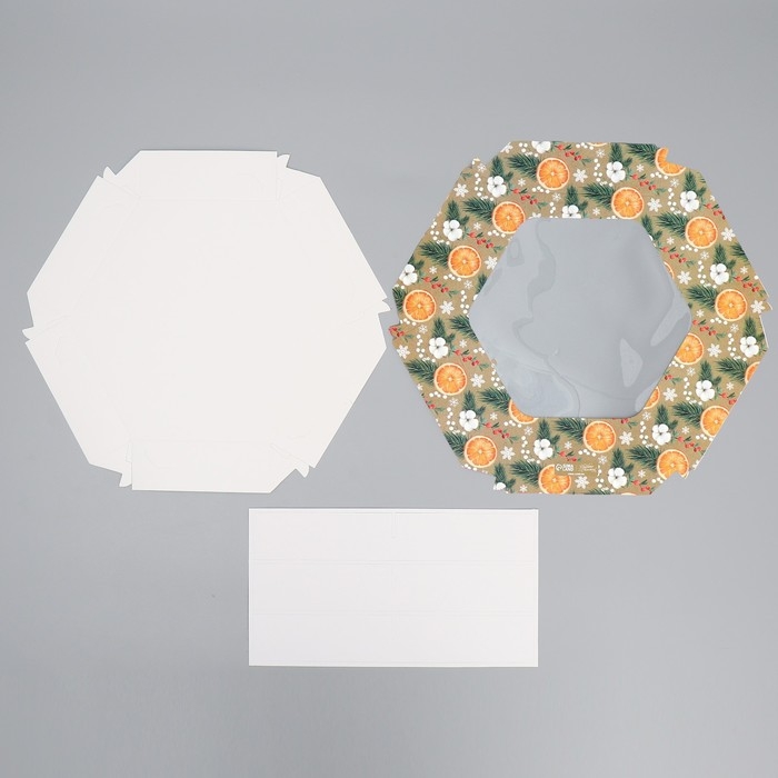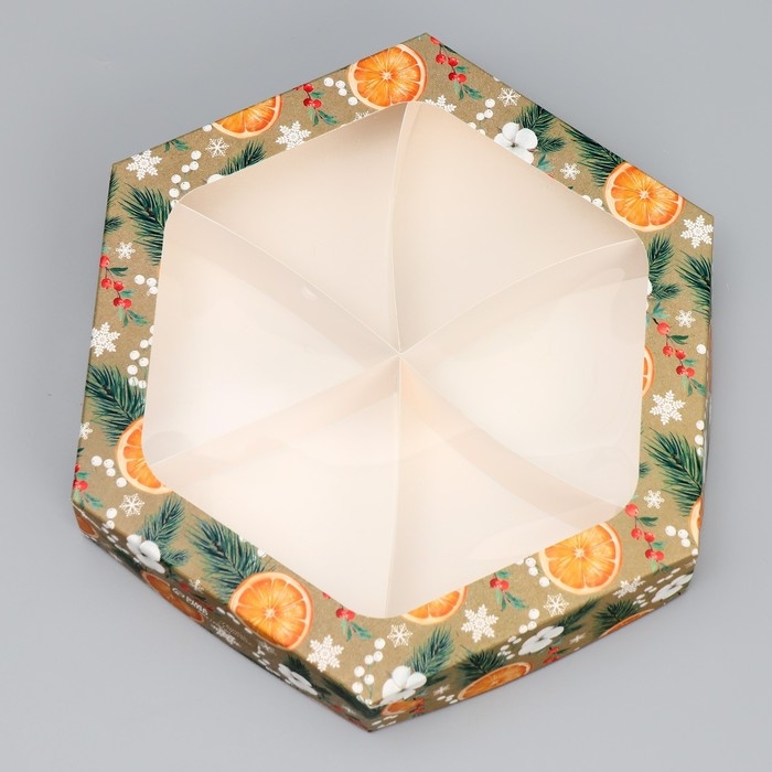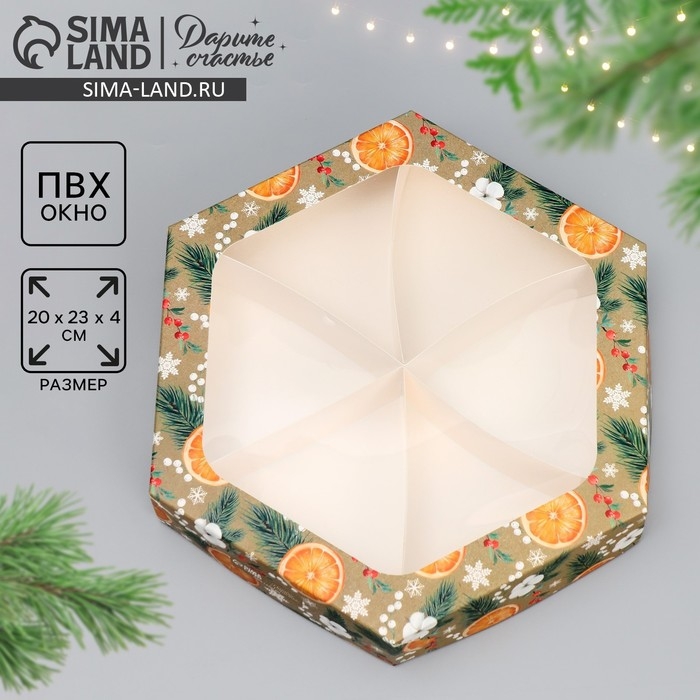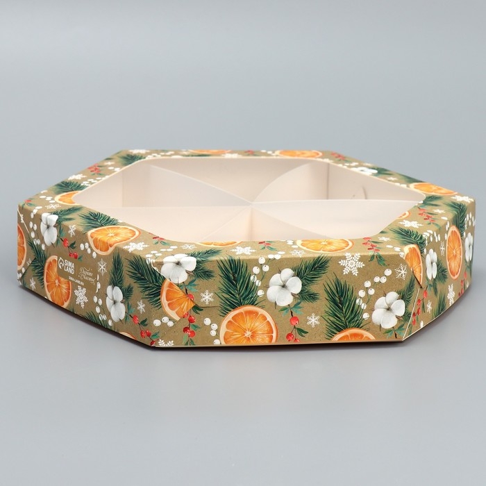 Коробка складная «Хвоя, хлопок, апельсины», 23 х 23 х 4 см, Новый год
