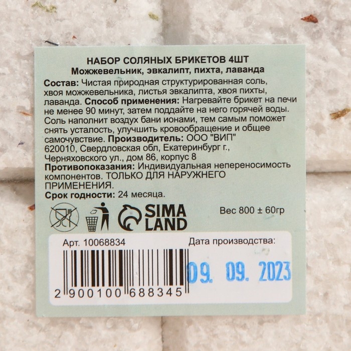 Соляной брикет набор 4 шт "Можжевельник, эвкалипт, пихта, лаванда"