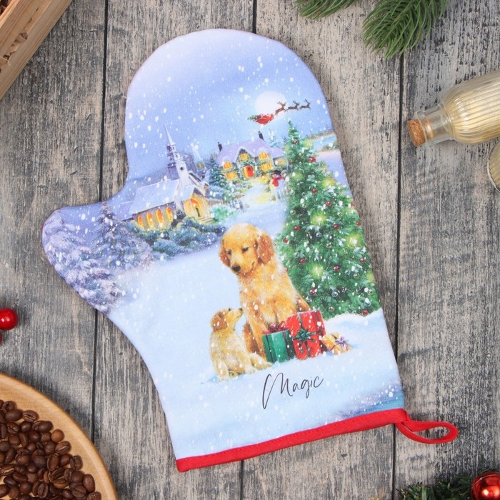 Новый год.Варежка-прихватка Этель "Рождественский вечер" 20х28 см, 100% хл, ватин 250 г/м2