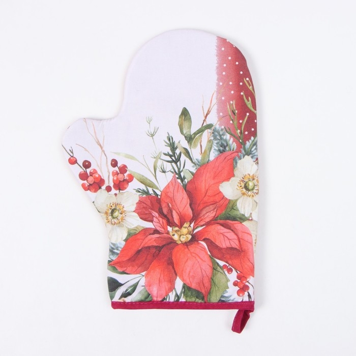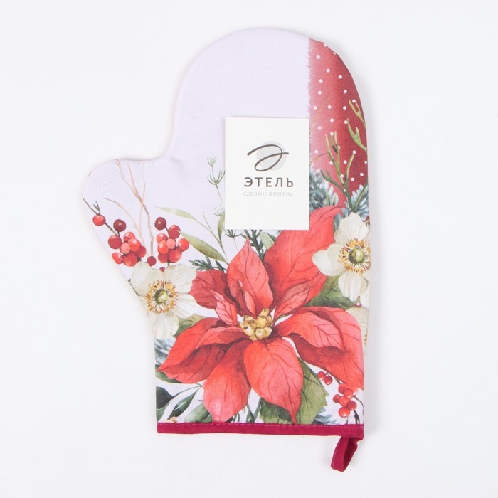 Новый год.Варежка-прихватка Этель "Пуансеттия" 20х28 см, 100% хл, ватин 250 г/м2