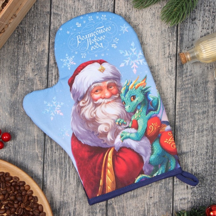 Новый год.Варежка-прихватка Этель "Сказочный гость" 20х28 см, 100% хл, ватин 250 г/м2