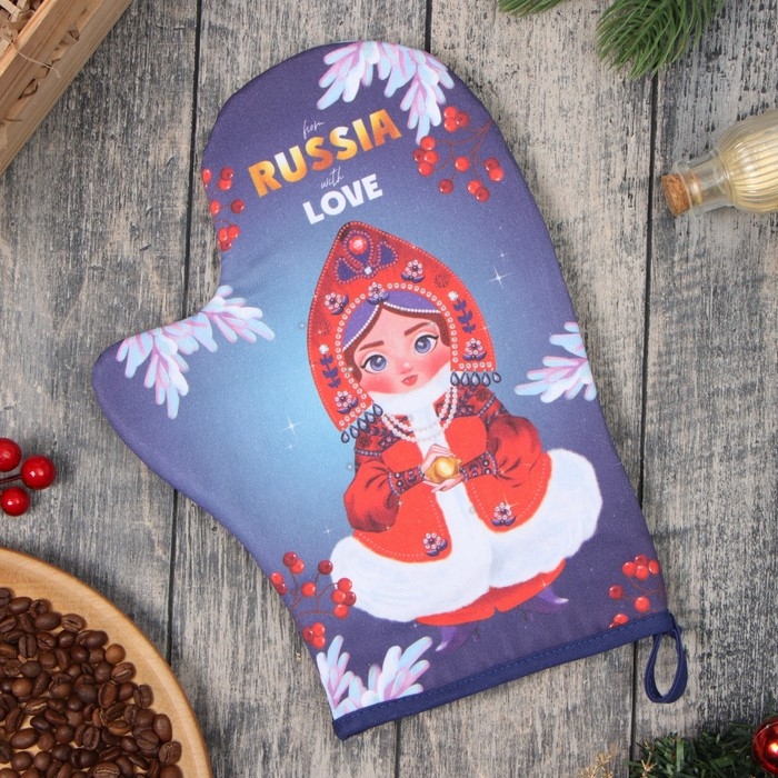 Новый год.Варежка-прихватка Этель "Матрёшка" 20х28 см, 100% хл, ватин 250 г/м2
