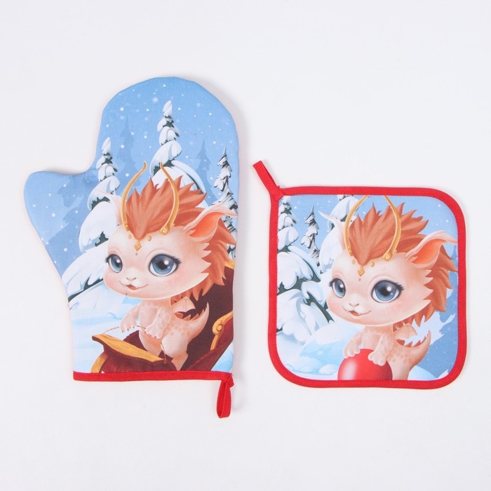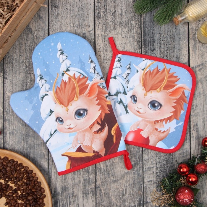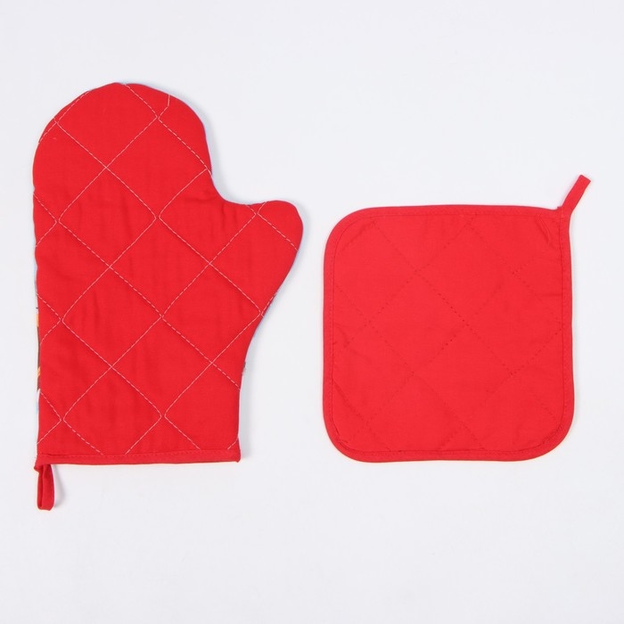 Новый год. Набор кухонный Этель "Веселья и радости": прихватка 19х19 см, варежка-прихватка 20х28 см, 100% х
