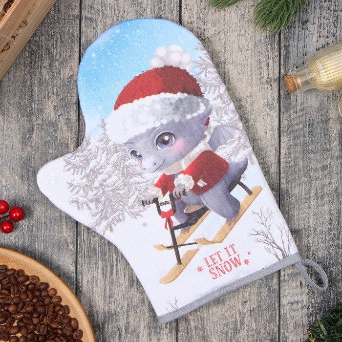 Новый год.Варежка-прихватка Этель "Новогодние забавы" 20х28 см, 100% хл, ватин 250 г/м2