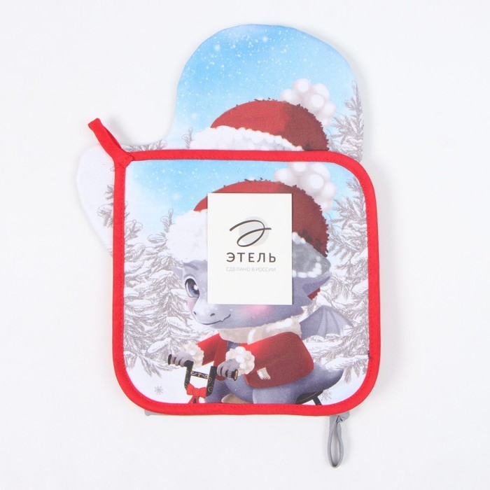 Новый год. Набор кухонный Этель "Новогодние забавы": прихватка 19х19 см, варежка-прихватка 20х28 см, 100% х